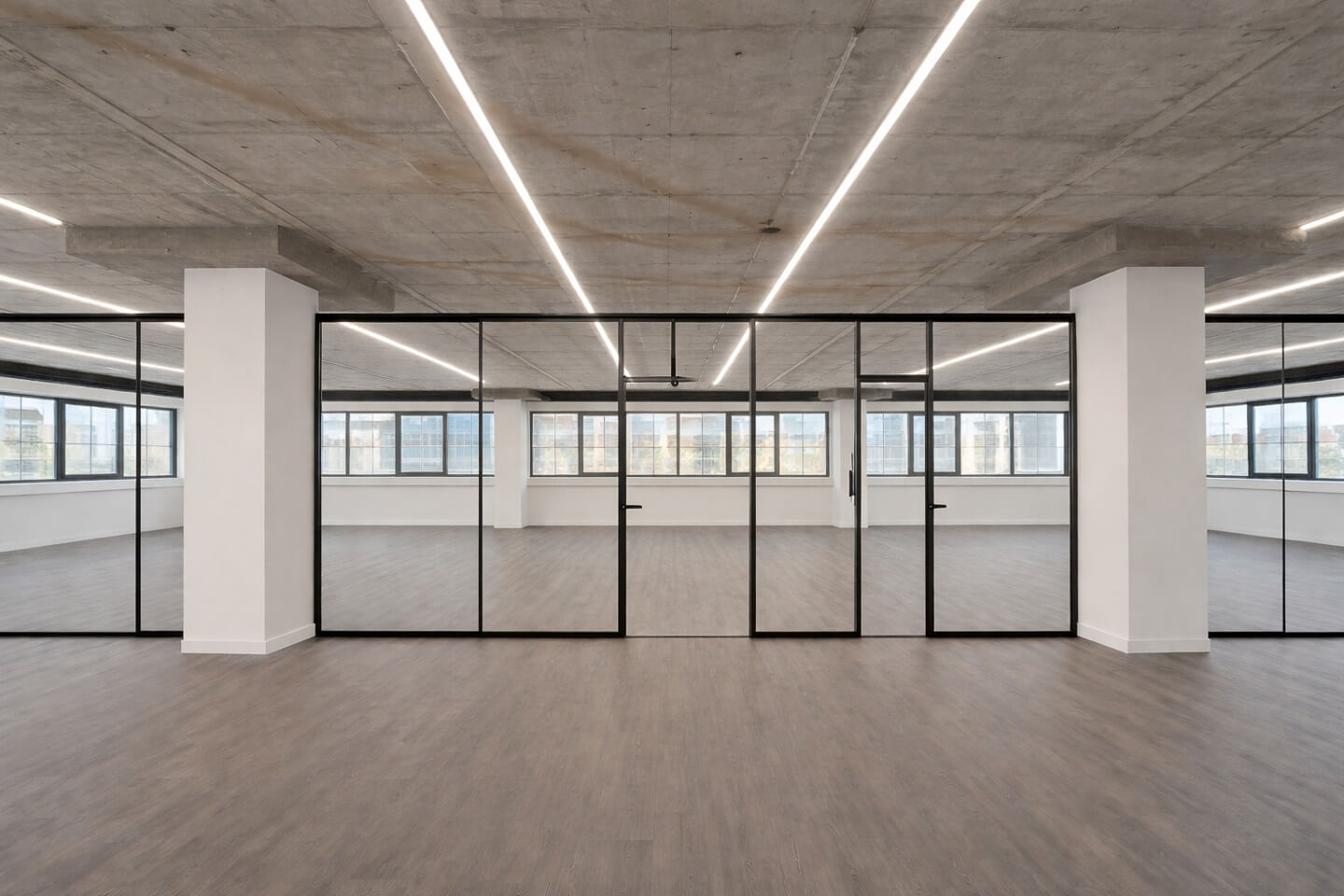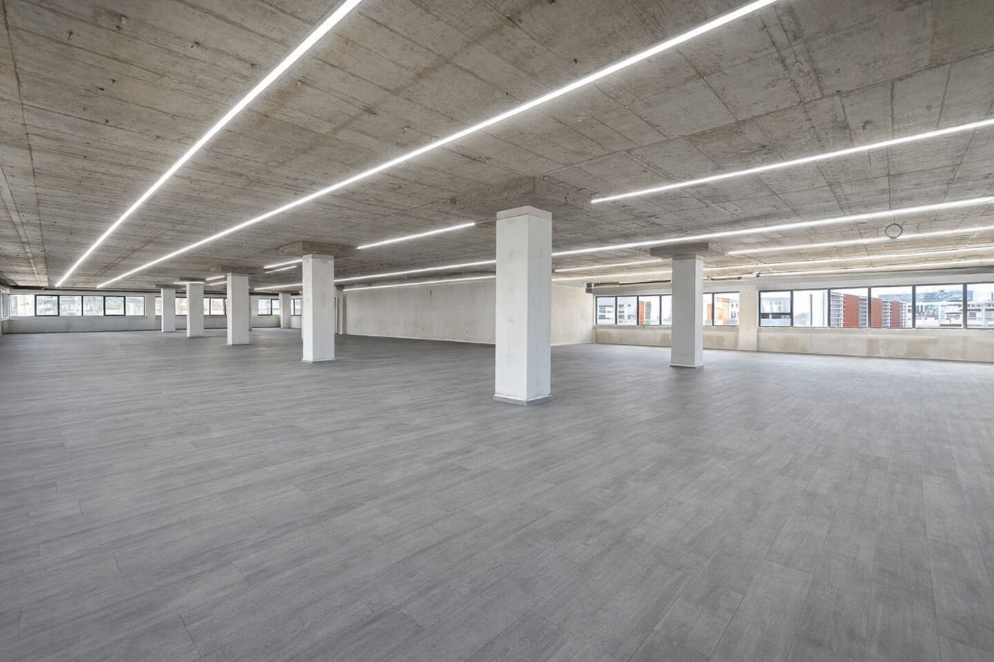 Originally built in 2000, the office will be delivered fully renovated in 2026 and includes modern technical specifications: structured cabling, raised floors, mineral fiber false ceilings, autonomous electric cooling-heating system, air conditioning, ventilation and fire detection systems, and double-glazed energy-efficient aluminum windows.